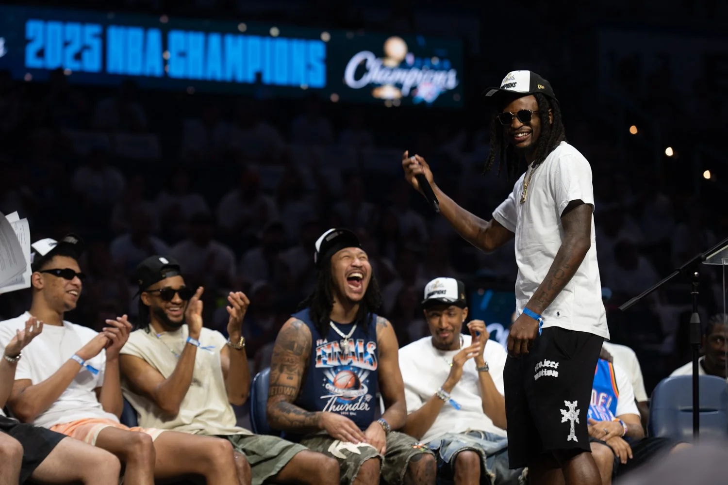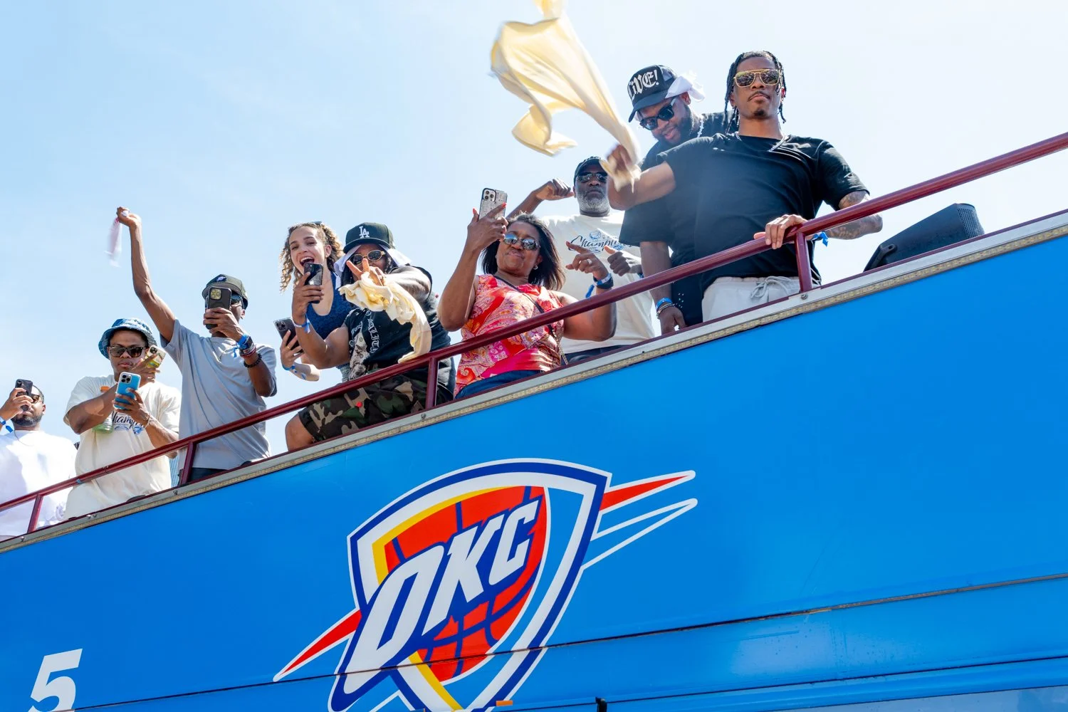 We captured the emotion of the Thunder’s victory on stage — speeches, laughter, and the trophy raised high. These moments show the team’s unity and the pride of Oklahoma City coming together to celebrate.